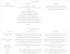 • Ni esta web ni sus representantes legales se hacen responsables ni del contenido ni de la veracidad de las políticas de privacidad que puedan tener los terceros mencionados en esta política de cookies.